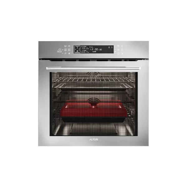 فر توکار آلتون V500B برقی این فر دارای نمای مشکی و حجم داخلی 72 لیتر و درب 4 جداره جداشونده و صفحه نمایش دیجیتال لمسی و 17 برنامه پخت و قفل کودک و تایمر پیشرفته زمان پخت و برنامه یخ زدایی و سیستم حسگر پخت گوشت و فن گردش هوای داغ سینی عمیق و جوجه گردان و پوشش داخی آسان تیز شونده و برنامه پخت سریع و سیستم ایمن خودکار می باشد. از ویژگی های این مدل فر میتوان به قابلیت بخار پز نمودن اشاره نمود.