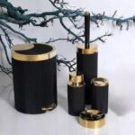 این ست اکسسوری حمام و توالت پنج تکه شامل جای مایع دستشویی ، لیوان بعنوان جای مسواک ،جای صابون ، سطل زباله و برس توالت شور میباشد. جنس این سرویس از پلاستیک ABS است که براحتی قابل شستشو میباشد البته از شستن این سرویس با شوینده های قوی خودداری نمایید. باتوجه به جنس ، طراحی زیبا و قیمت مناسب این سرویس ، آنرا جز سرویسهای لوکس و پرطرفدار نموده است. این کالا براحتی با هر محیط و رنگی هماهنگ می شود و شما میتوانید با قراردادن گل یا شمعهای رنگی و معطر زیبایی آنرا دوچندان نمایید.
