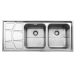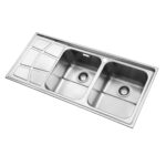 ابعاد سینک روکار کد 738 استیل البرز به طول 120 سانتیمتر و عرض 60 سانتیمتر می باشد. سینک 738 استیل البرز دارای دو لگن عمیق به عمق 20 سانتیمتر و ضخامت 0/8 میلیمتر و فانتزی می باشد. همچنین ظرفیت لگن این سینک 56 لیتر می باشد.