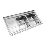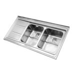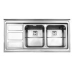 ابعاد سینک روکار کد 761 استیل البرز به طول 120 سانتیمتر و عرض 60 سانتیمتر می باشد. سینک 761 استیل البرز دارای دو لگن عمیق به عمق 20 سانتیمتر و ضخامت 0/8 میلیمتر و فانتزی می باشد. همچنین ظرفیت لگن این سینک 56 لیتر می باشد.